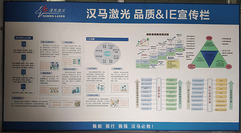 品質管理是一個全員參與、全面控制、持續改進的工作,不僅僅是品質部的工作,是和所有人密切相關,延伸到公司各個部門的綜合性管理體系。漢馬激光召開全體人員品質管理大會,要求所有人員都必須的品質理念,產品質量從我做起,嚴格精益生產行工序、工時,在保質量的前提下求產能。采購部嚴格采購流程,多供應商管理,保證來料質量;計劃部合理安排生產周期,控制業務部不合理工期要求,在工時上保證質量;生產部每天早會強調“質量第一”,嚴格遵守安裝流程,認真做好自檢;品質部嚴格檢驗標準,落實每道檢驗過程。