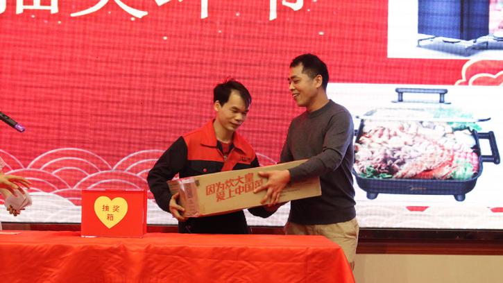 為了活躍年會現場氣氛,年會設計了激動人心的抽獎環節,面對舞臺上擺著的諸多獎品,聽著抽獎嘉賓報出的一位、兩位中獎數字,現場氣氛高潮迭起,一份突如其來的驚喜、一份意想不到的感動,臺上臺下一起歡呼著,讓現場變成了幸??M繞的歡樂海洋,還有那精心準備的“父愛如山·母愛如水”伴手禮感恩杯,這是送給漢馬所有家人最好的新年禮物!