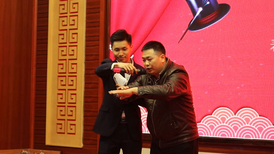 酒杯舉起來,歡歌唱起來,游戲玩起來,作為漢馬會年的傳統節目——全員游戲開始了,臺上的你爭我搶,臺下的助威吶喊,只為這一年一度年會的喜慶歡聚。
