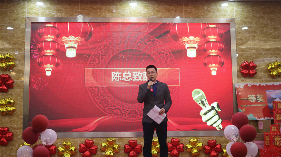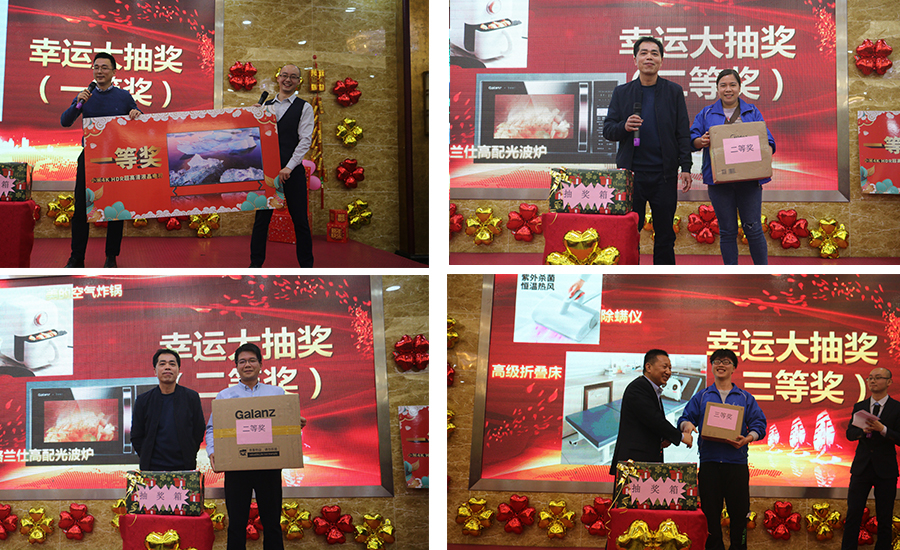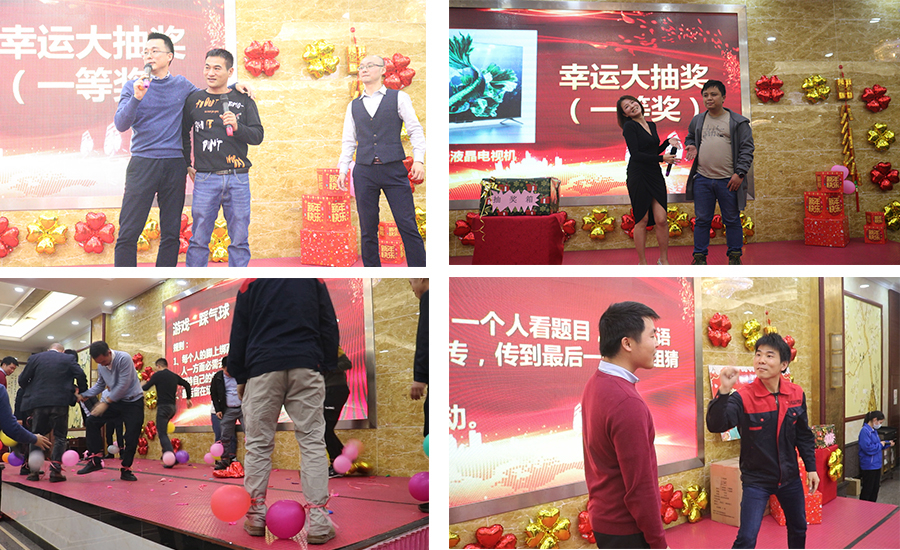 在年會現場,還精心設計了激動人心的抽獎環節,面對舞臺上擺著的諸多獎品,聽著抽獎嘉賓報出的一位、兩位中獎數字,現場氣氛高潮迭起,一份突如其來的驚喜、一份意想不到的感動,臺上臺下一起歡呼著,讓現場變成了幸福縈繞的歡樂海洋,更有歡快的游戲環節。