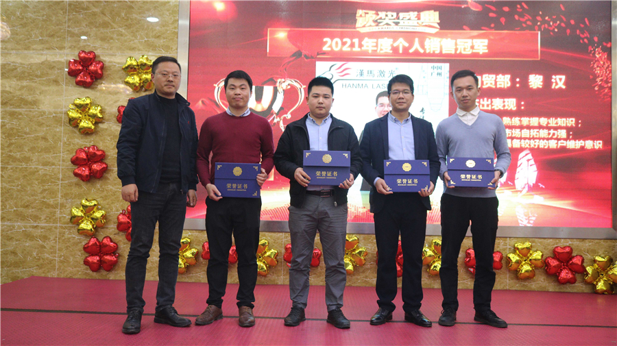 圍繞“追逐夢想,展望未來”的主題,總經理陳綿著先生全面回顧了漢馬激光就2021年公司取得的成就進行總結匯報,同時結合市場環境變化,規劃與展望了2022年新征程,并再一次提出了漢馬發展的愿景:疑心聚力,篤行致遠,成為國際知名的激光切割設備制造商