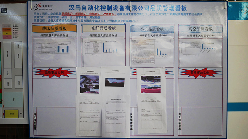 品質(zhì)管理是一個(gè)全員參與、全面控制、持續(xù)改進(jìn)的工作,不僅僅是品質(zhì)部的工作,是和所有人密切相關(guān),延伸到公司各個(gè)部門(mén)的綜合性管理體系。漢馬激光召開(kāi)全體人員品質(zhì)管理大會(huì),要求所有人員都必須的品質(zhì)理念,產(chǎn)品質(zhì)量從我做起,嚴(yán)格精益生產(chǎn)行工序、工時(shí),在保質(zhì)量的前提下求產(chǎn)能。采購(gòu)部嚴(yán)格采購(gòu)流程,多供應(yīng)商管理,保證來(lái)料質(zhì)量;計(jì)劃部合理安排生產(chǎn)周期,控制業(yè)務(wù)部不合理工期要求,在工時(shí)上保證質(zhì)量;生產(chǎn)部每天早會(huì)強(qiáng)調(diào)“質(zhì)量第一”,嚴(yán)格遵守安裝流程,認(rèn)真做好自檢;品質(zhì)部嚴(yán)格檢驗(yàn)標(biāo)準(zhǔn),落實(shí)每道檢驗(yàn)過(guò)程。