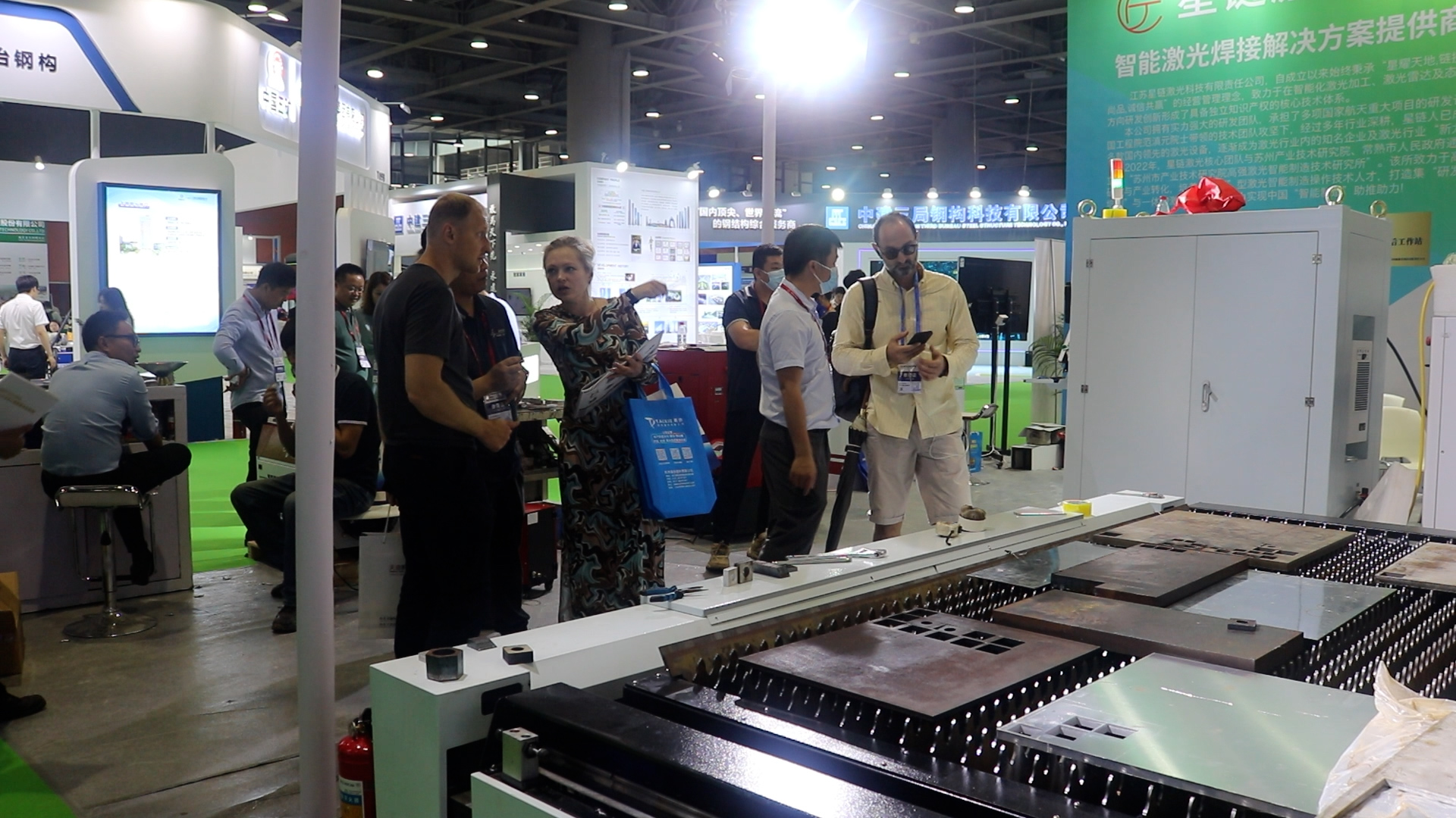 展會現場,參展商和參觀者絡繹不絕。在漢馬激光的展位前,參觀者們被公司展出的各種激光切割機、焊接設備和技術所吸引。這些設備不僅展示了漢馬激光在激光技術領域的領先地位,也體現了其在鋼結構行業中的廣泛應用。